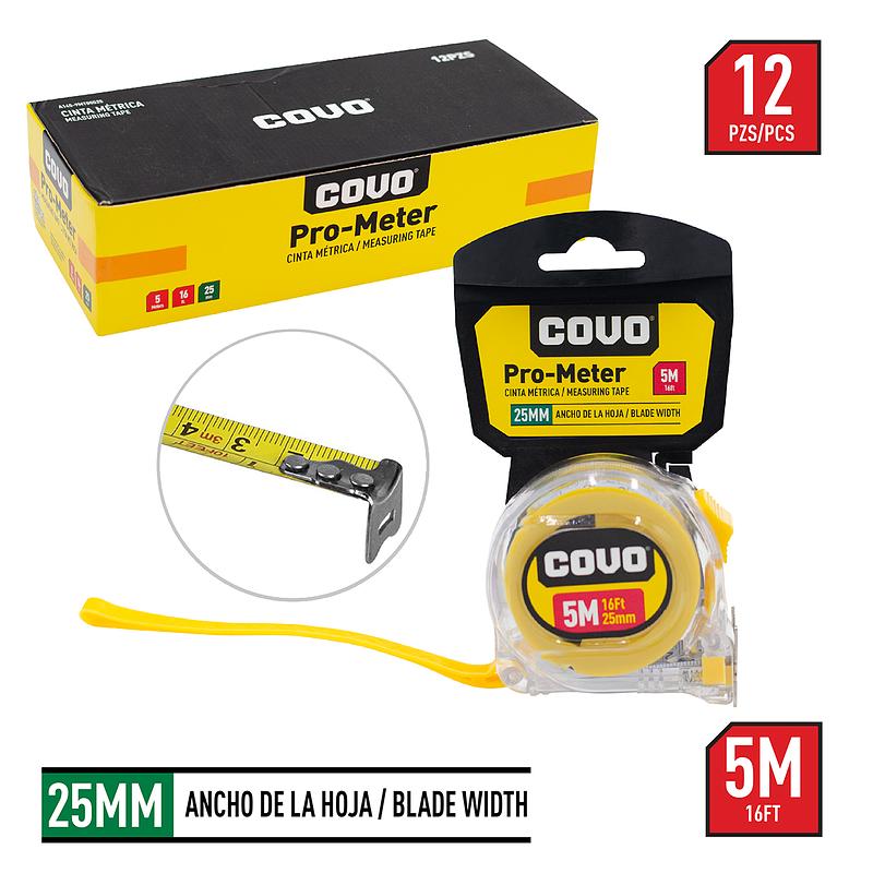 Flexometro 5m Transparente Cinta Blanca Doble Display X12