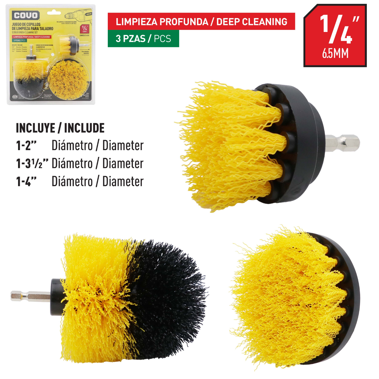 JUEGO DE CEPILLOS DE LIMPIEZA PARA TALADRO DE 3PCS DE 1/4 AJUSTA CUALQUIER TALADRO