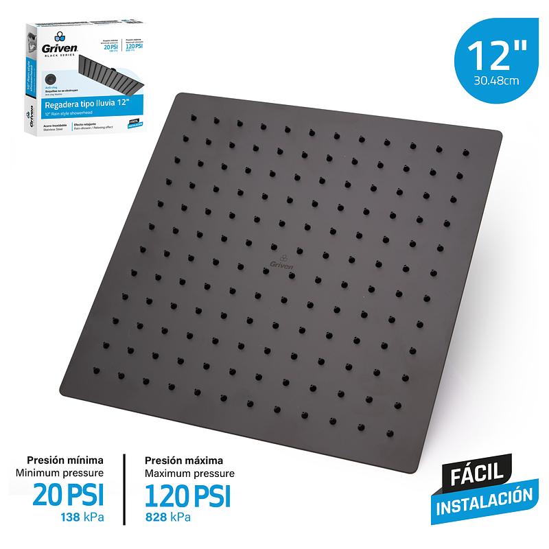REGADERA TIPO LLUVIA DE 12" CUADRADA